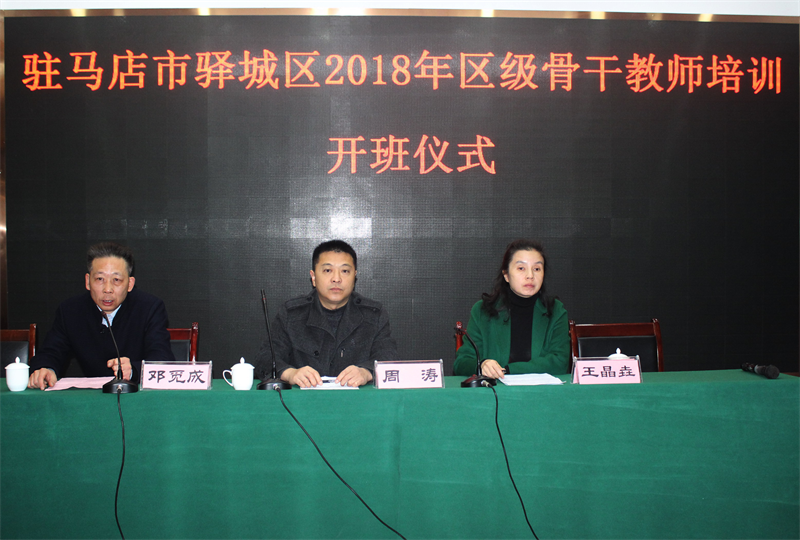 11月27日至12月2日驻马店市驿城区2018年区级骨干教师培训班在公司举行。11月28日上午举行了开班仪式,驻马店市驿城区教育体育局副局长王晶垚,公司党总支书记周涛,副经理邓觅成和100多名参训教师参加了开班仪式。仪式由邓觅成主持。