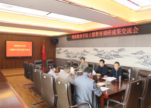 周涛在主持会议中指出,会议是按照学校主题教育方案要求,并报请学校巡回指导组同意后召开的。调研课题围绕贯彻落实党中央决策部署和习总书记重要指示精神,围绕本单位存在的突出问题、热点难点问题和学院各项事业发展的实际问题,坚持了政治统领、使命引领、问题导向,取得了阶段性调研成果。通过深入开展调查研究,交流调研成果,有利于领导班子摸清情况,把握症结,集中智慧,更好的推动事业发展。会上,班子成员分别就基层党组织更好发挥政治功能的有效途径、成人高等教育发展面临的问题及改进措施、更好规范校外教学点招生和管理等工作对策、如何做好培训工作以及提升转型期高校成人高等教育质量内涵的调查研究等调研题目,逐一报告了调研的主题背景、调研方式方法、相关工作现状、存在的问题,重点介绍了今后计划采取的措施,并分别谈了调查研究的体会。