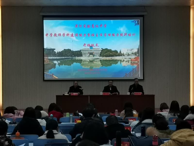 12月7日上午,漯河市实验高级中学教师团队建设能力暨班主任管理能力提升培训开班仪式在公司举行。漯河市实验高级中学党委书记、董事长游建德,公司党总支书记周涛,副经理邓觅成和90名参训教师参加了开班仪式。仪式由邓觅成主持。