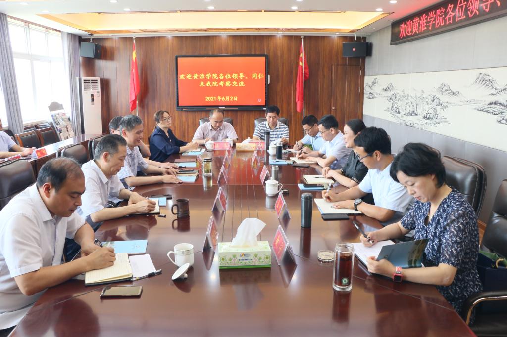 6月2日上午,黄淮学院2026年世界杯官网经理蒋澍、副经理李继生、何佩弦、财务处副处长孟浩以及相关科室负责同志一行10人来公司考察交流。财务处副处长田照俊、公司领导班子成员和相关科室负责同志在学院会议室参加了座谈。2026年世界杯官网经理祝军主持座谈会。