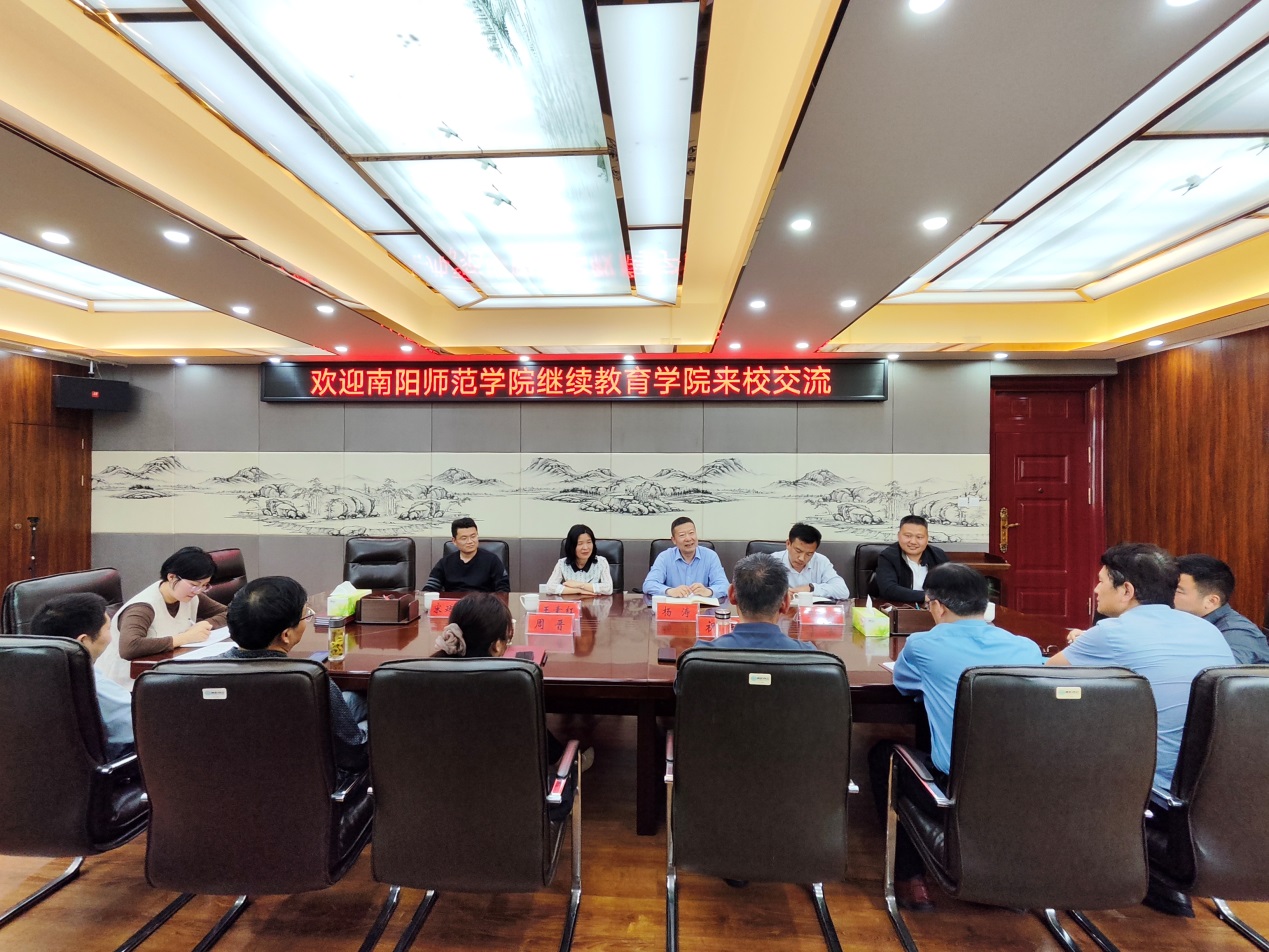 祝军对南阳师院学院同行的到来表示热烈欢迎,介绍了公司继续教育办学历史、发展现状。杨涛对公司的热情接待表示感谢,高度评价公司2023年高等学历继续公司产品评估工作。双方就高等学历继续教育、校外教学点管理、非学历继续教育工作等进行了深入交流。