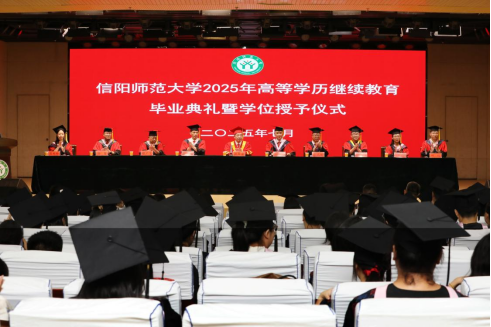 祝军在主持讲话中表示,高等学历继续教育是广大有志青年接受终身教育、实现人生理想目标的有效途径。希望全体毕业生珍惜在校学习的情缘,在未来的道路上,继续保有这份终身学习的热情与勇气,让知识成为应对挑战的智慧、开拓机遇的力量,书写新时代信阳师大人奋进的精彩篇章!